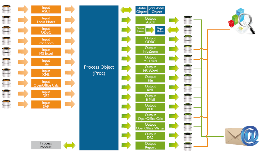 Ob Sie nun Daten aus unterschiedlichen Anwendungssystemen in DOCHOUSE oder andere Notes Anwendungen integrieren, Auswertungen über Excel bereitstellen, Daten über InfoZoom analysieren und visualisieren.